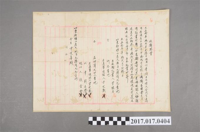 大正11年竹東郡橫山庄曾娘石向曾文喜借用延期證書
