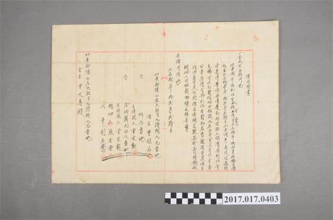 明治37年竹北一堡大肚庄曾文彪簽收指令地整第一五七四