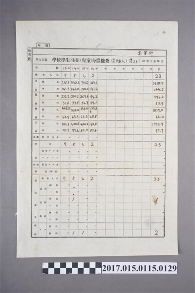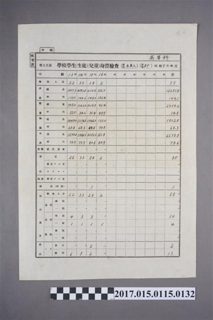 楊梅公學校學生身體檢查(本島人)(男)