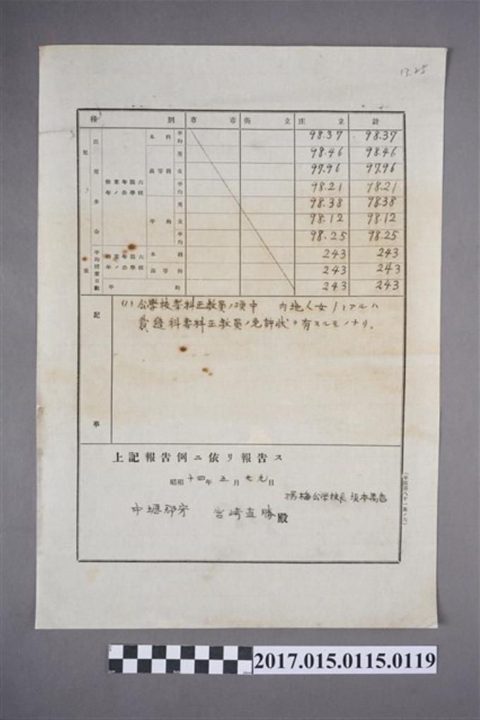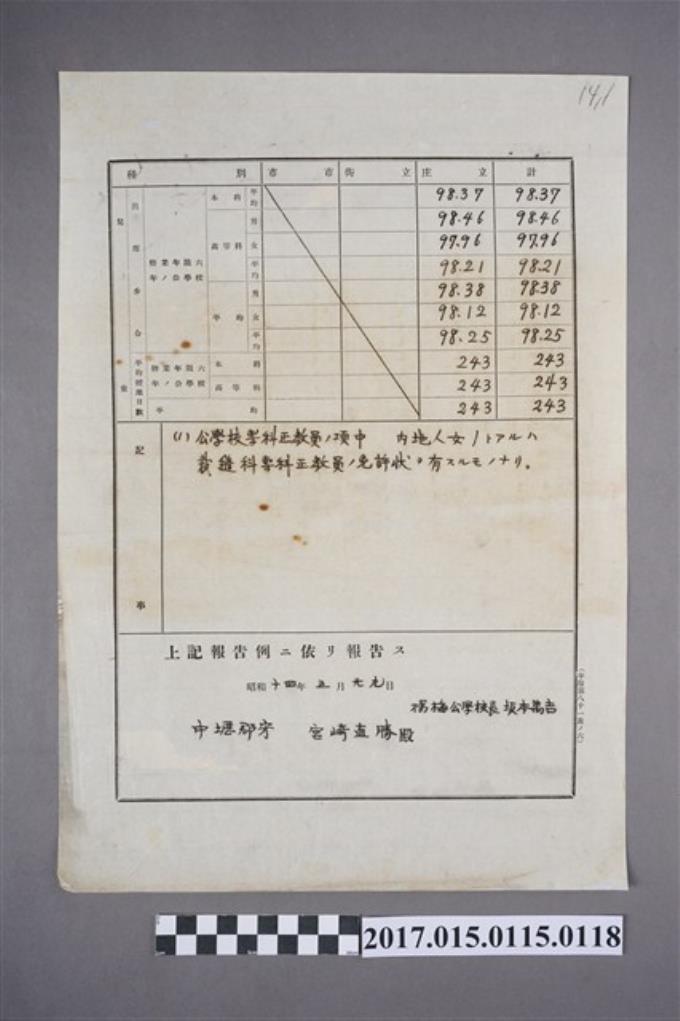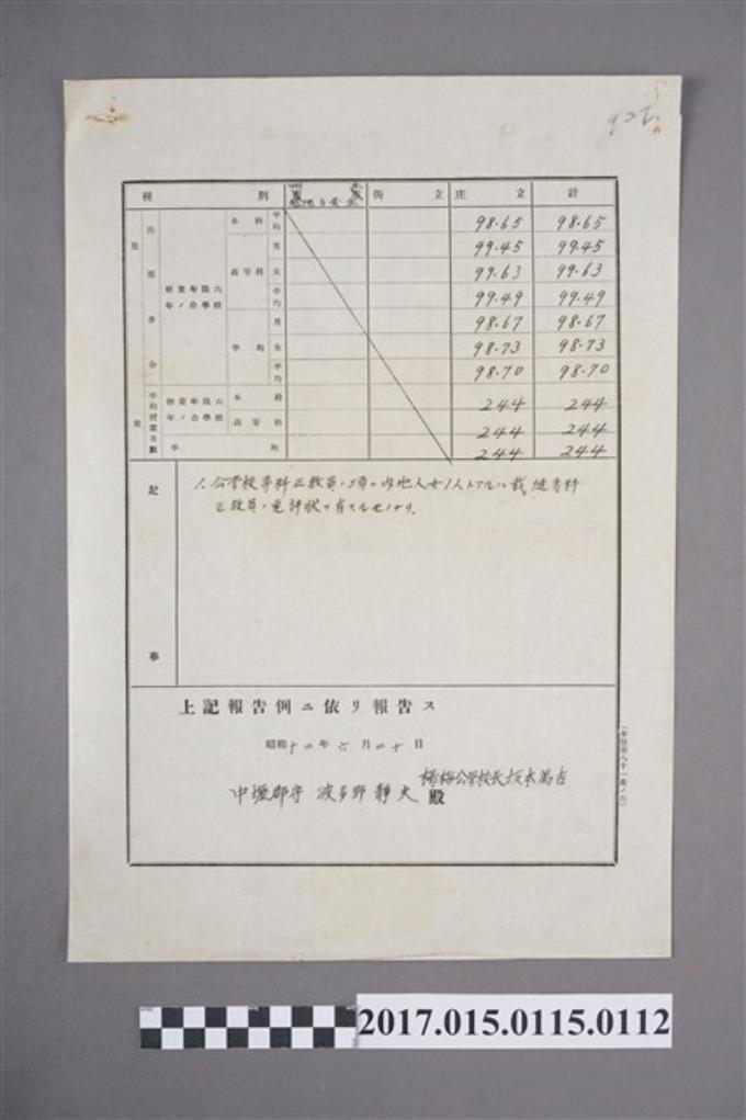 楊梅公學校街庄立兒童出席步合、平均授業日數調查