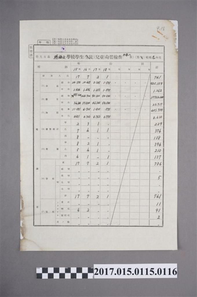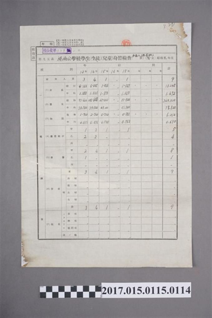 楊梅公學校學生兒童身體調查(本島人)(男)