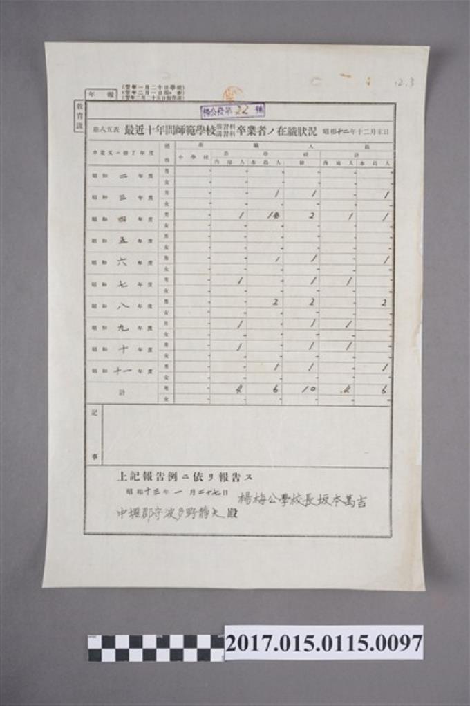 楊梅公學校最近十年間師範學校演習科/講習科卒業者在職狀況