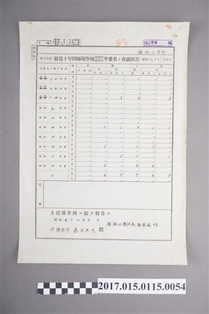 楊梅公學校最近十年間師範學校演習科/講習科卒業者在職狀況