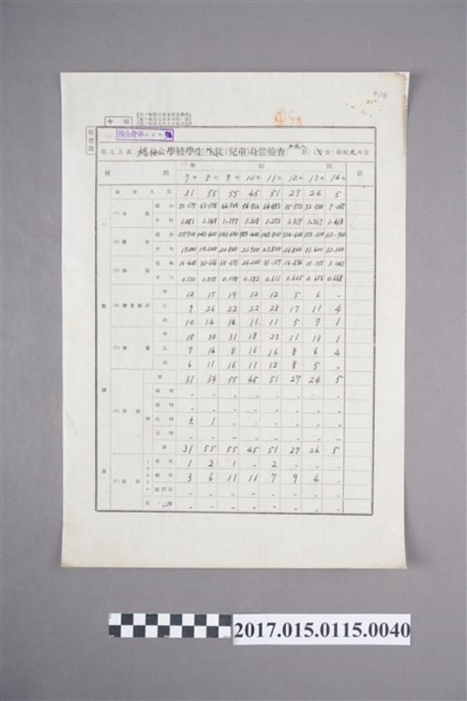 楊梅公學校學生身體檢查表