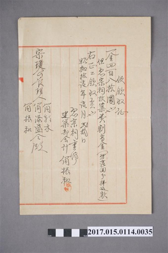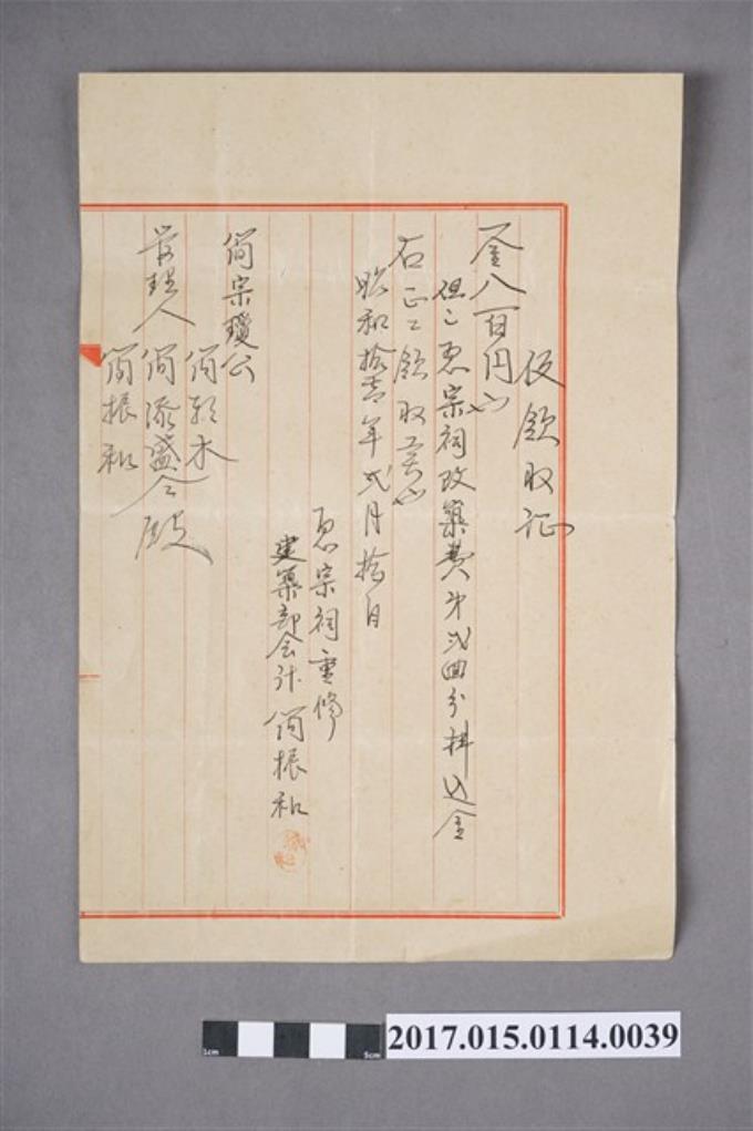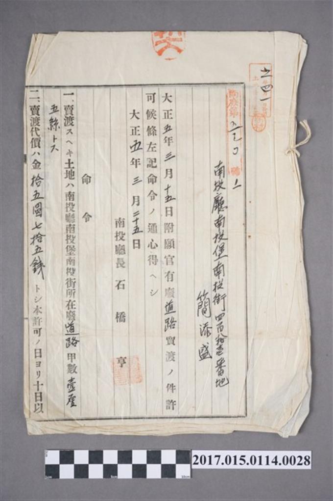 南投廳南投堡南投街四百八拾壹番地簡添盛申請官有地賣渡許可通知