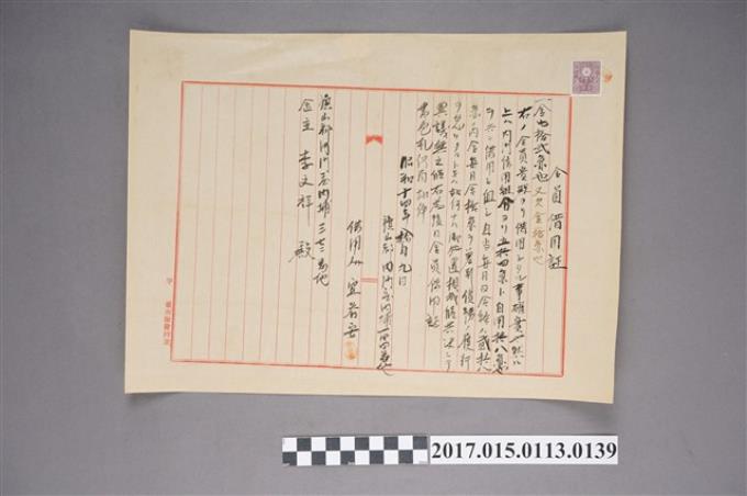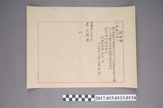 旗山郡內門莊東勢埔貳七九番地林能家屋賃貸借契約書