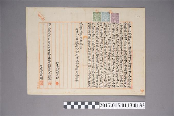 內埔第十一甲民李文祥領收證-一金十円