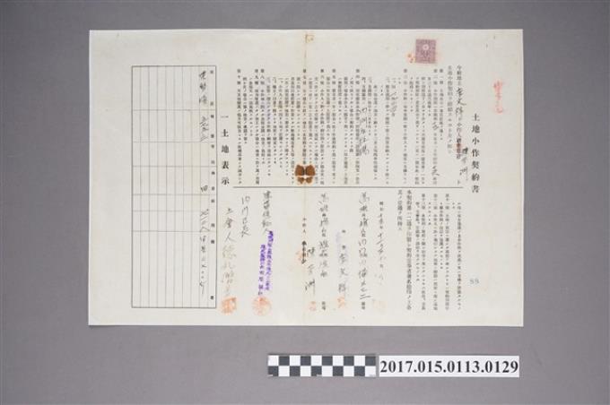 高雄州旗山郡內門莊東勢埔五七五二番地之地主李文祥與小作人陳芳洲土地小作契約書