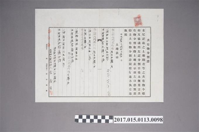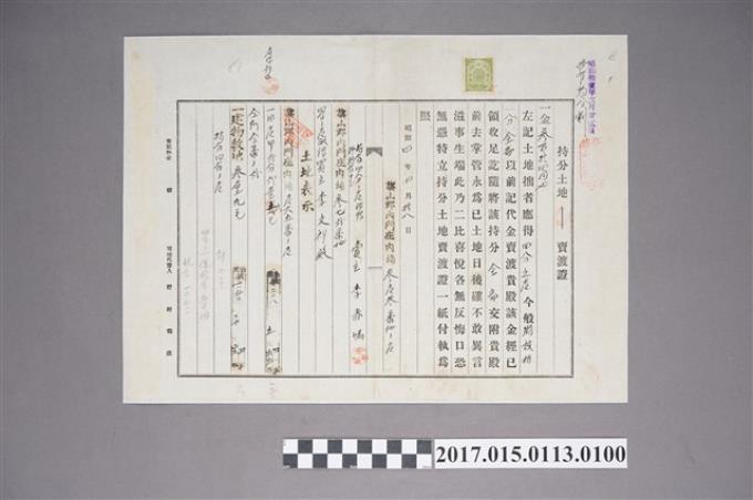 旗山郡內門莊內埔參壹參番地之一之地主李赤媽持分土地賣渡證