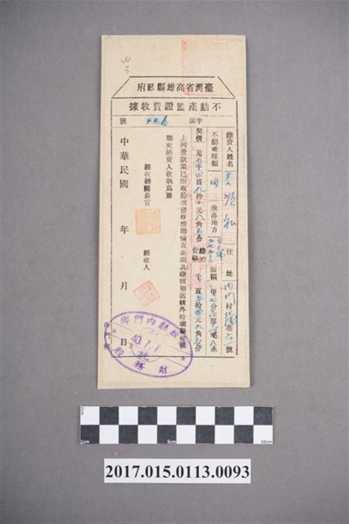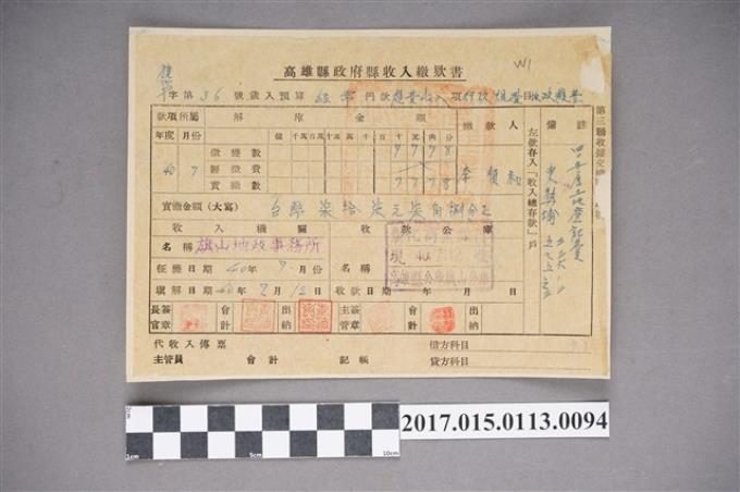 李順和高雄縣政府縣收入繳款書