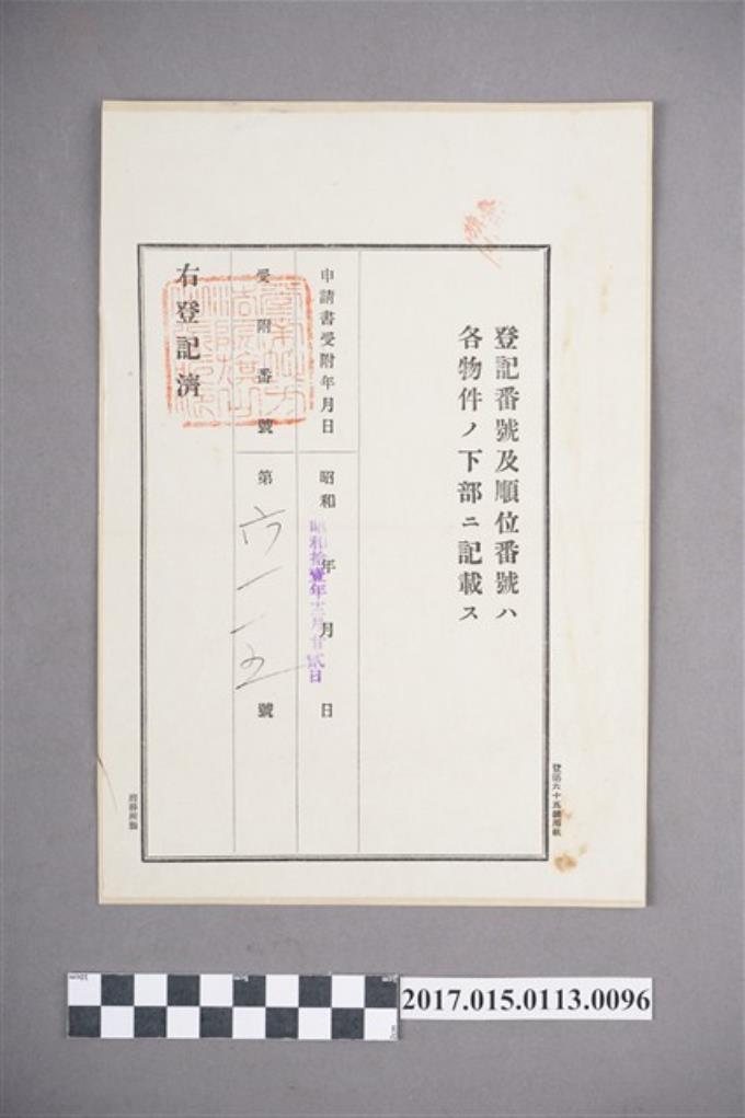 登記番號及順位番號-受附番號615