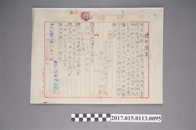 山郡內門鄉內門村北埔巷六壹號李文詳贈與證書-不動產