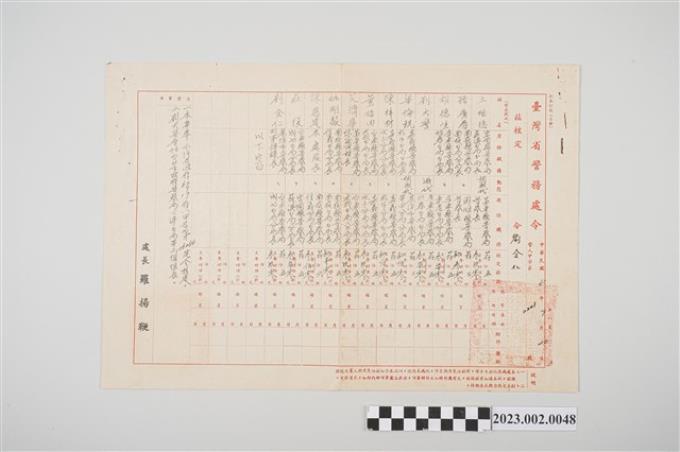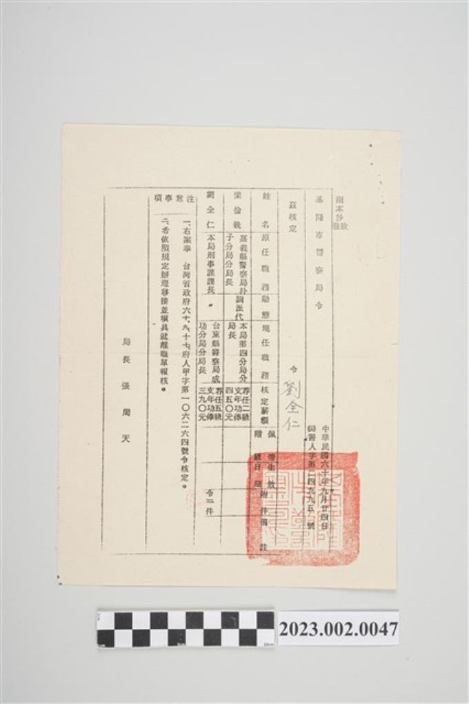 民國62年8月24日劉全仁臺灣省臺東縣警察局令