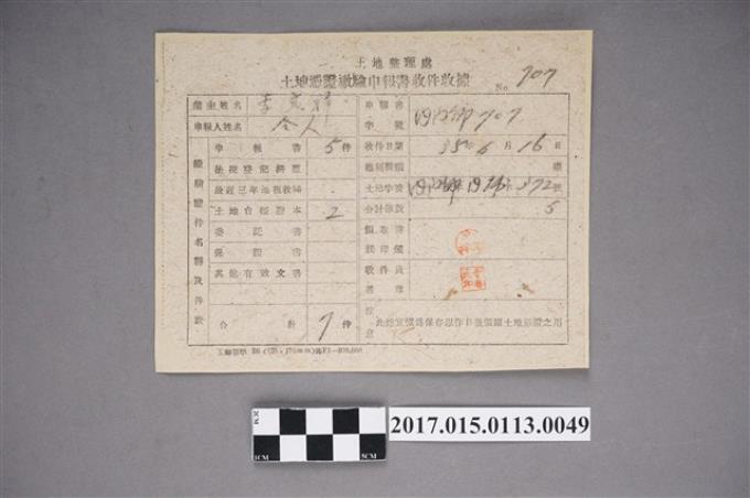土地憑證繳驗申報書收件收據