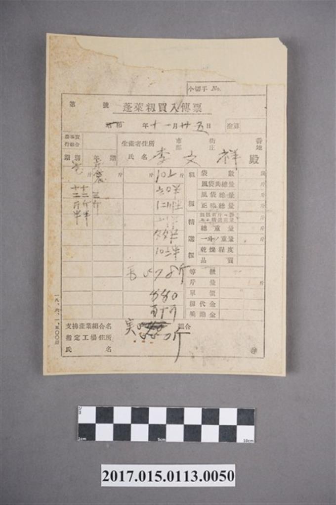 蓬萊籾買入傳票