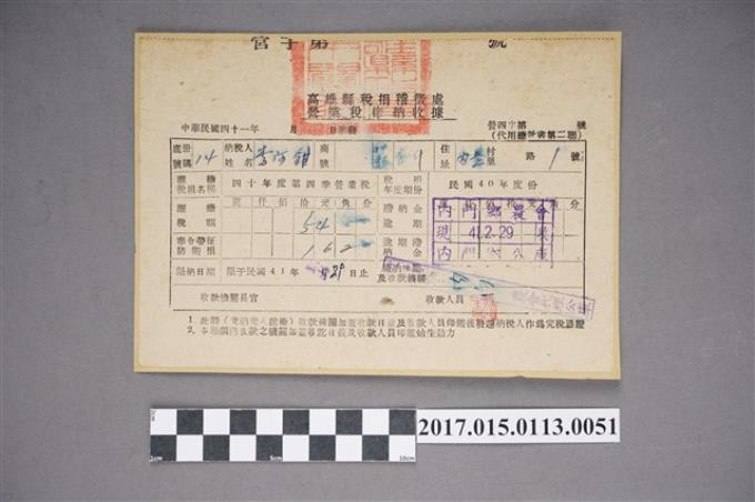 李阿鉗營業稅繳納收據