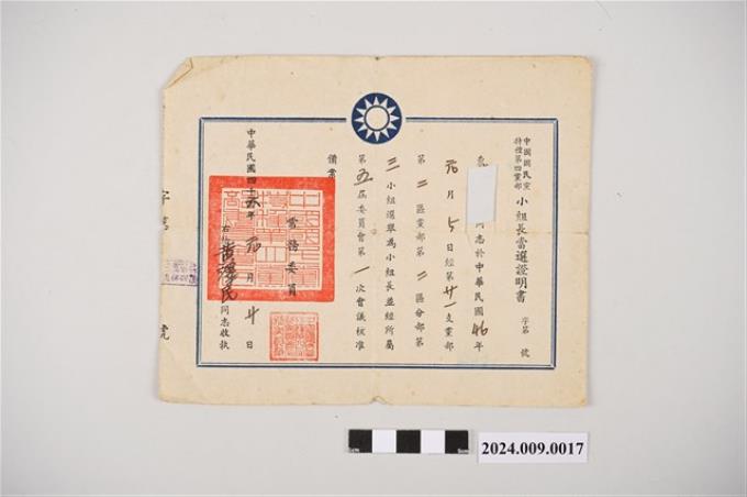 中華民國46年1月20日中國國民黨部特種第四黨部小組長當選證明書