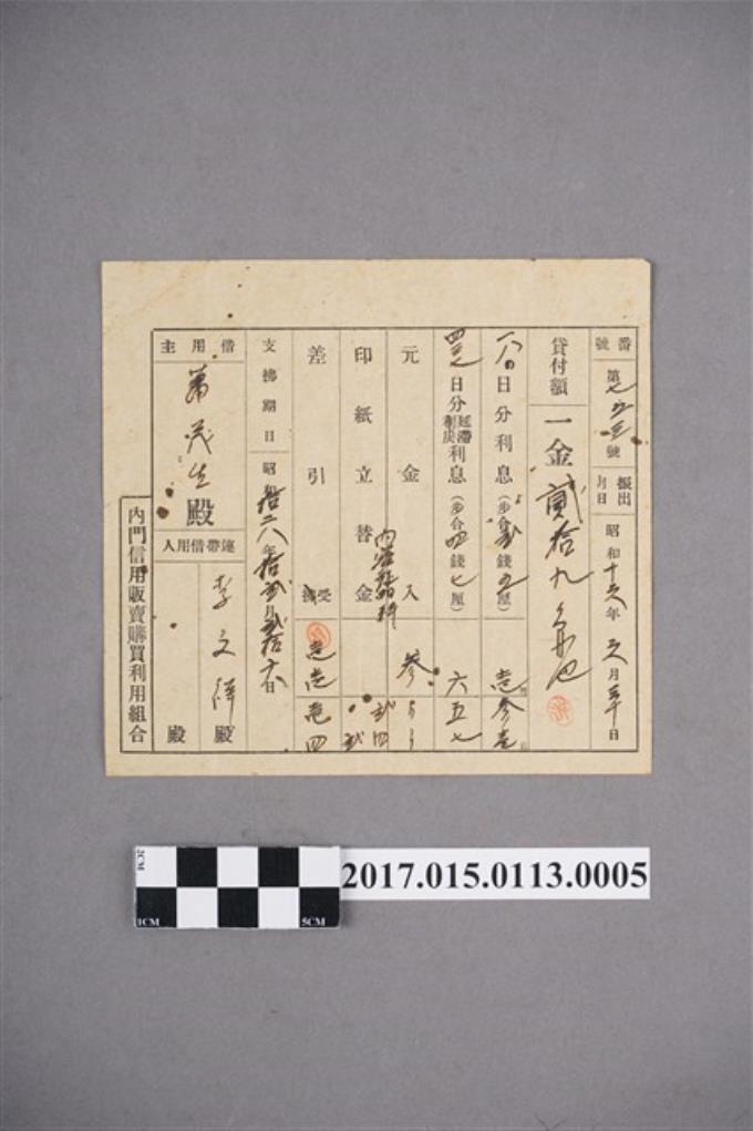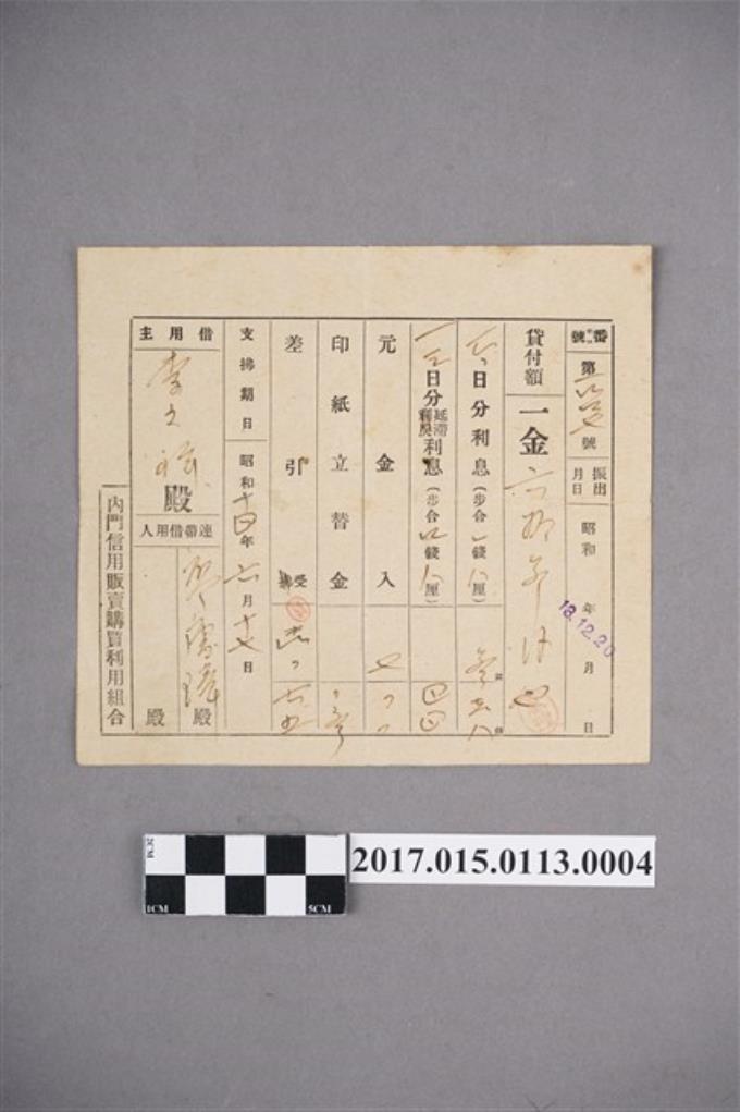 李文祥生內門信用販賣購買利用組合1250號借用證