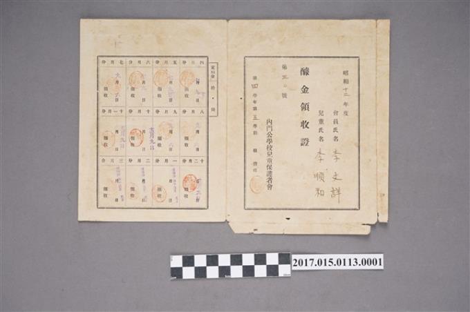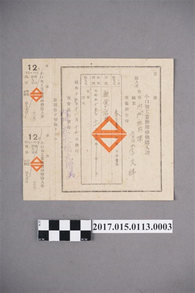 內門莊內埔李文祥小口加工業務用砂糖購入證-飲食店用