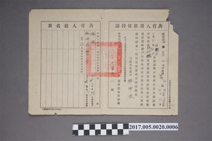 林坤佐共有人書狀保持證中埔字第36號