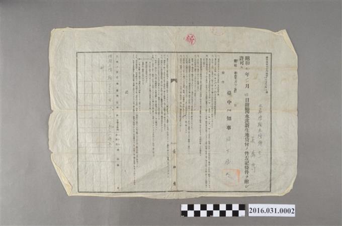 臺中州知事日下辰太給吳萬壽租借濁水溪新生地之許可