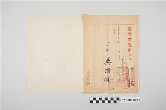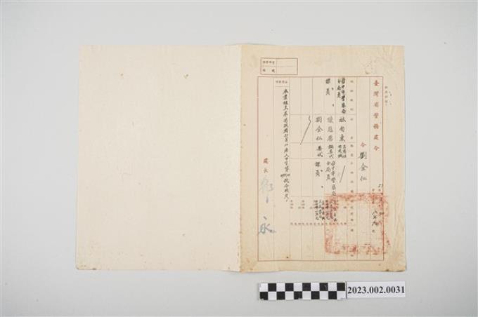 民國39年劉全仁臺灣省政府訓令