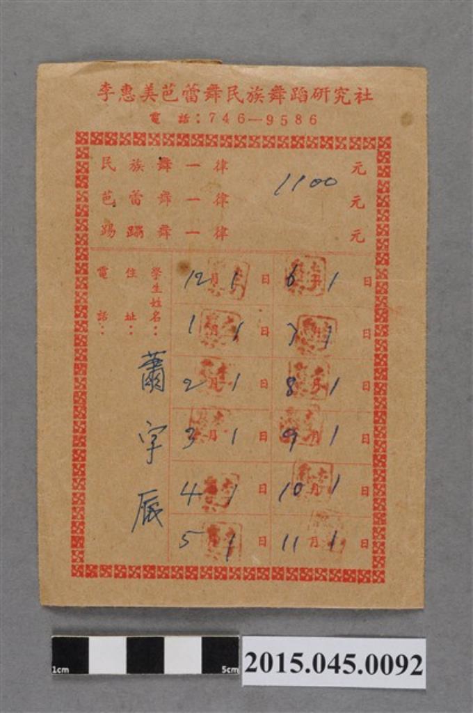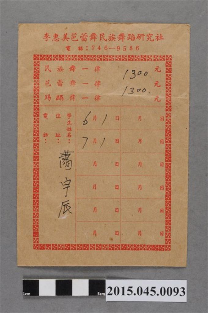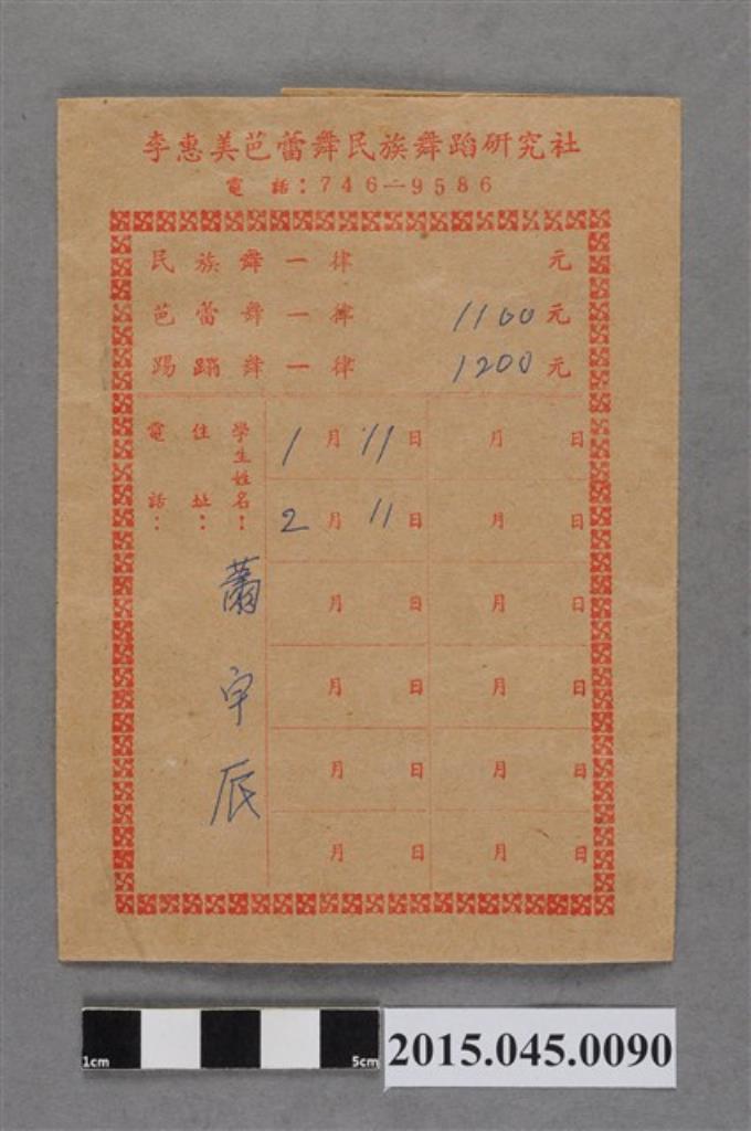 李惠美芭蕾舞民族舞蹈研究社2003年蕭宇辰學費袋
