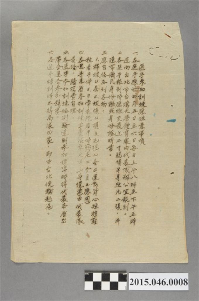 台灣省參加第七屆全國運動大會選手參加選拔訓練應注意事項書