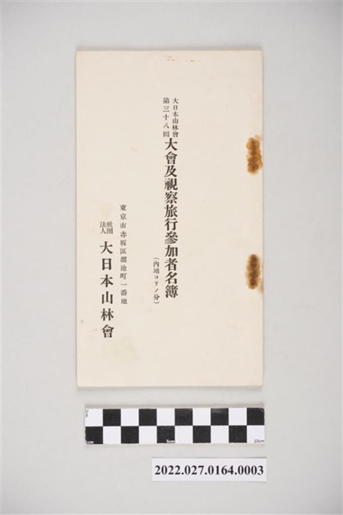 大日本山林會第38回大會〈大會及視察旅行參加者名簿〉