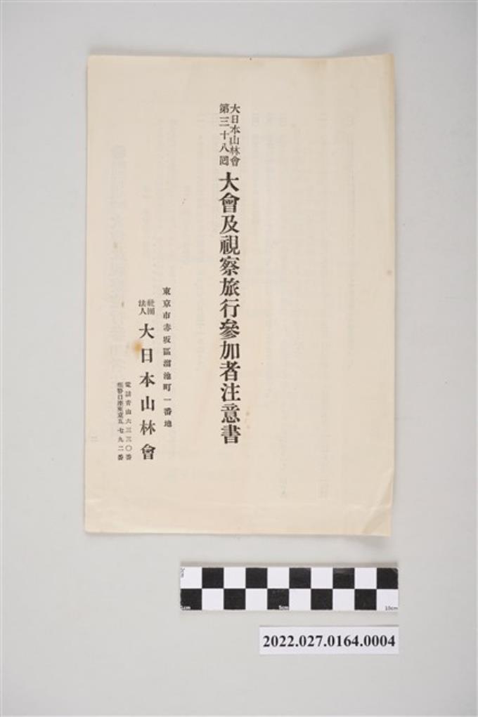 大日本山林會第38回大會〈大會及視察旅行參加者注意書〉