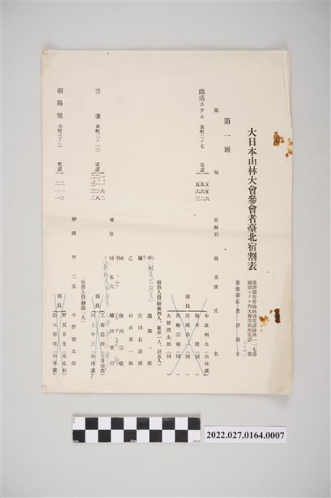 大日本山林會第38回大會〈參會者臺北宿割表〉