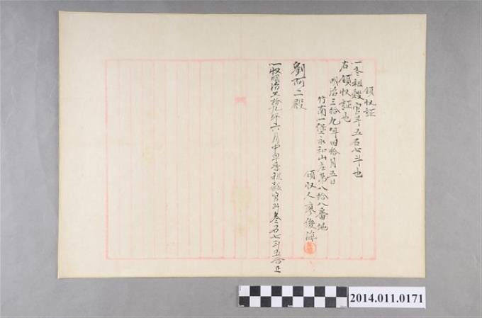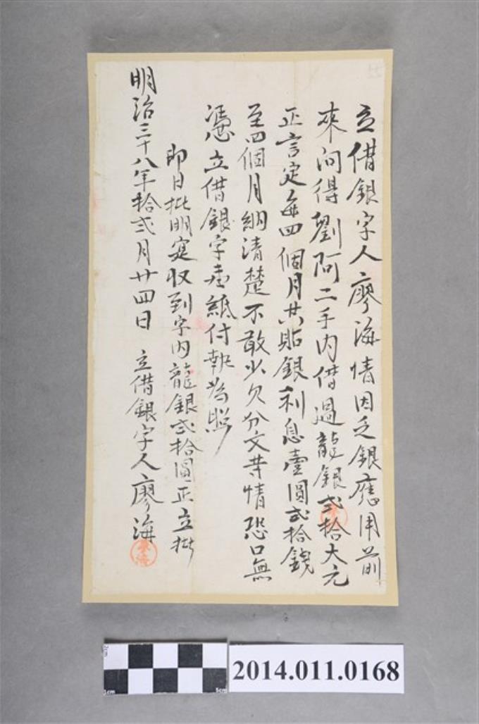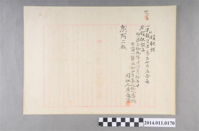 明治39年陽10月5日廖俊海領收証