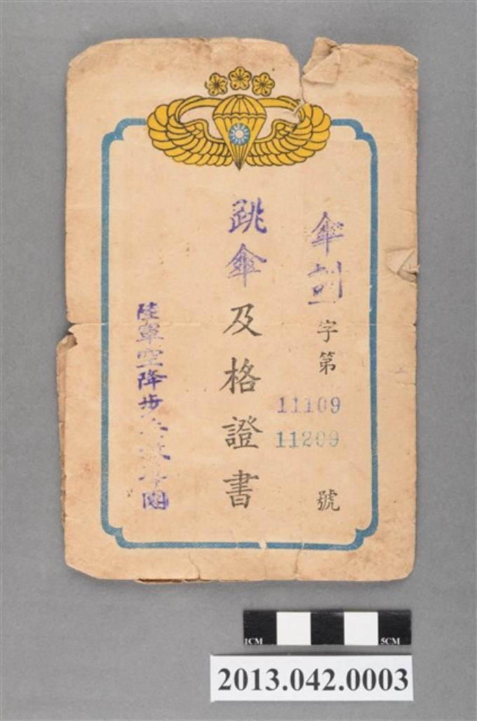 中華民國陸軍發予許榮吉之跳傘及格證書