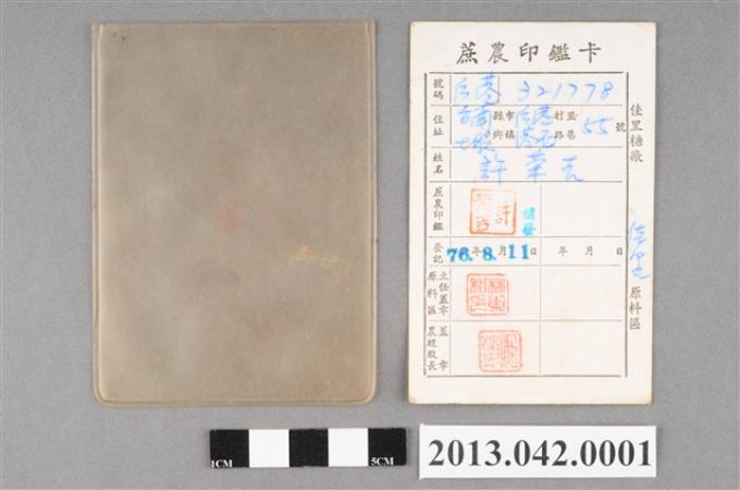 台糖公司佳里糖廠發予許榮吉之蔗農印鑑卡