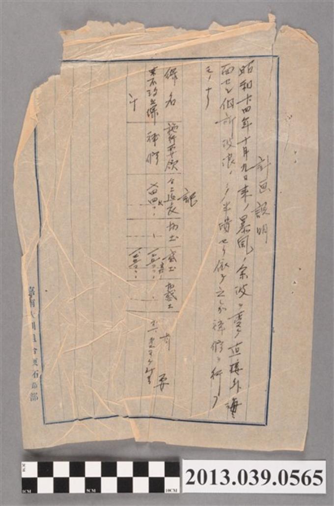 嘉南大圳組合〈東石郡部關於颱風受災海岸線修復工程計畫說明〉