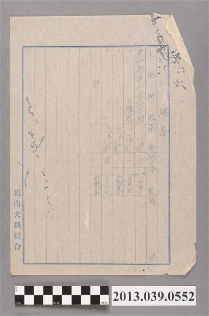 嘉南大圳水利組合〈請購國有財產土地調查書〉