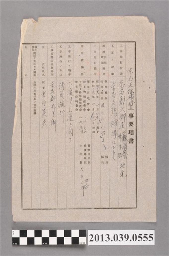 嘉南大圳組合〈東石支線補修工事要項書〉