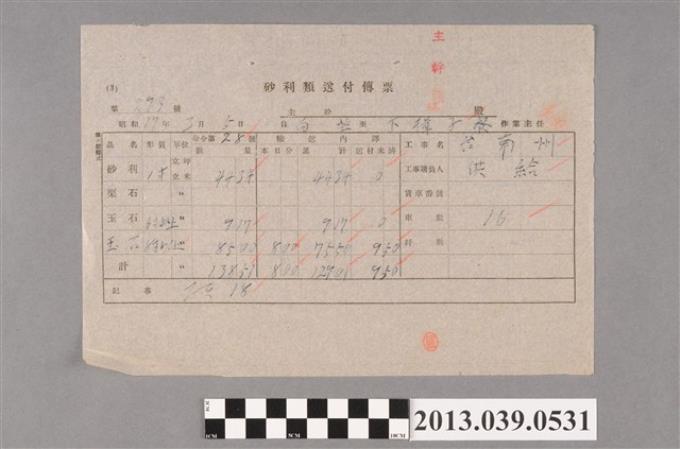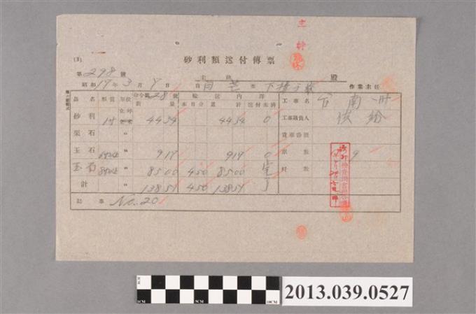 嘉南大圳組合〈砂利類送付傳票 第298號〉