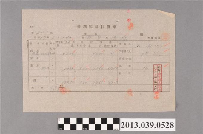 嘉南大圳組合〈砂利類送付傳票 第241號〉