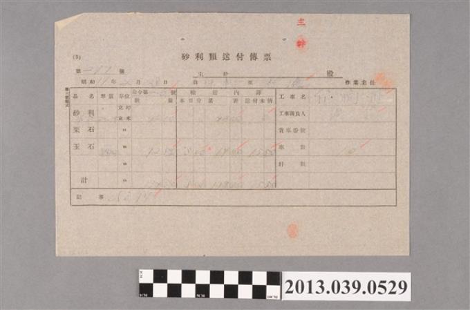 嘉南大圳組合〈砂利類送付傳票 第279號〉