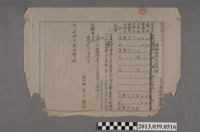嘉南大圳組合〈鐵線橋分線堤防修補地上物補償費表 新營郡部〉