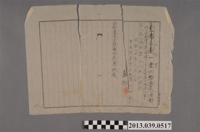 嘉南大圳組合〈崙背庄盧抄予南新厝子區實行小組合長之工程報價單〉