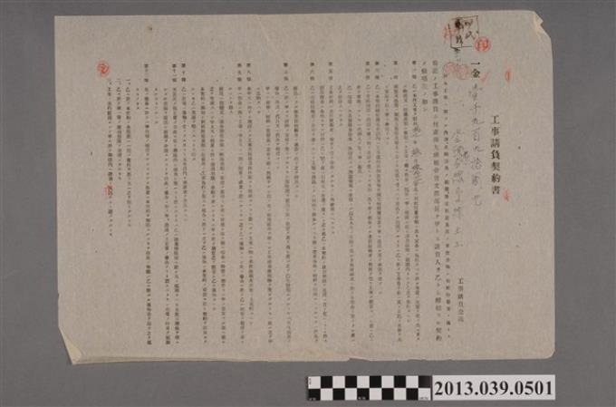 嘉南大圳組合〈曾文郡部對范明善之工程委託契約書-1〉