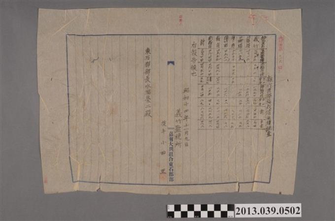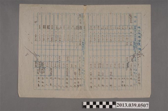 嘉南大圳組合〈義竹監視所 雜作區陸稻栽培面積調查表〉