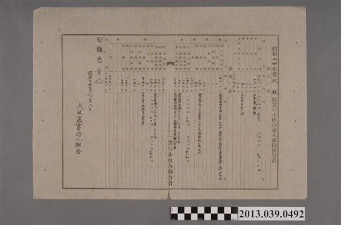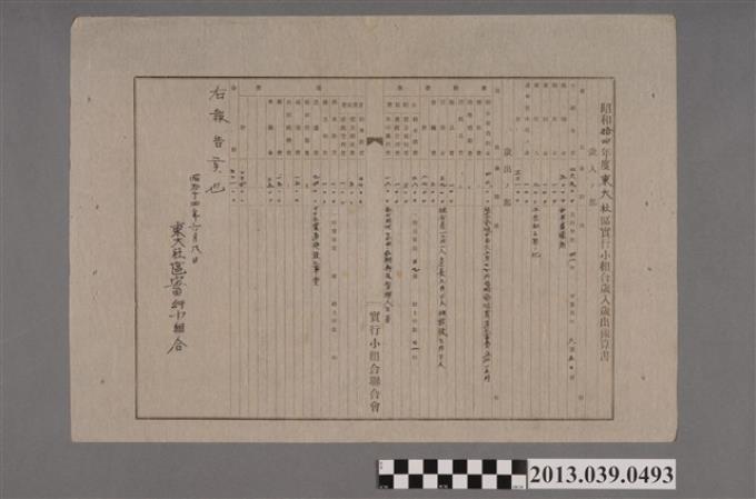 嘉南大圳組合〈昭和十四年度東大社區實行小組合歲入歲出豫算書〉