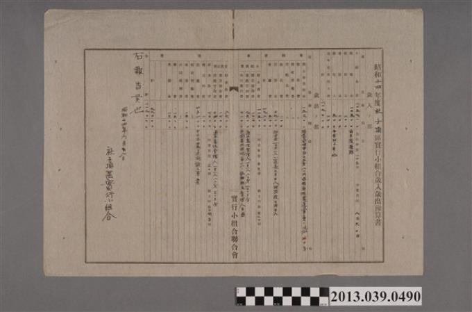 嘉南大圳組合〈昭和十四年度社內區實行小組合歲入歲出豫算書〉