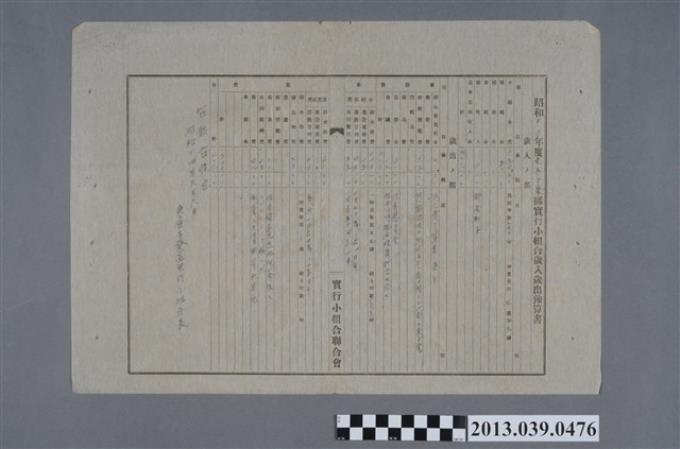 嘉南大圳組合〈昭和十四年度南三舍區實行小組合歲入歲出豫算書〉