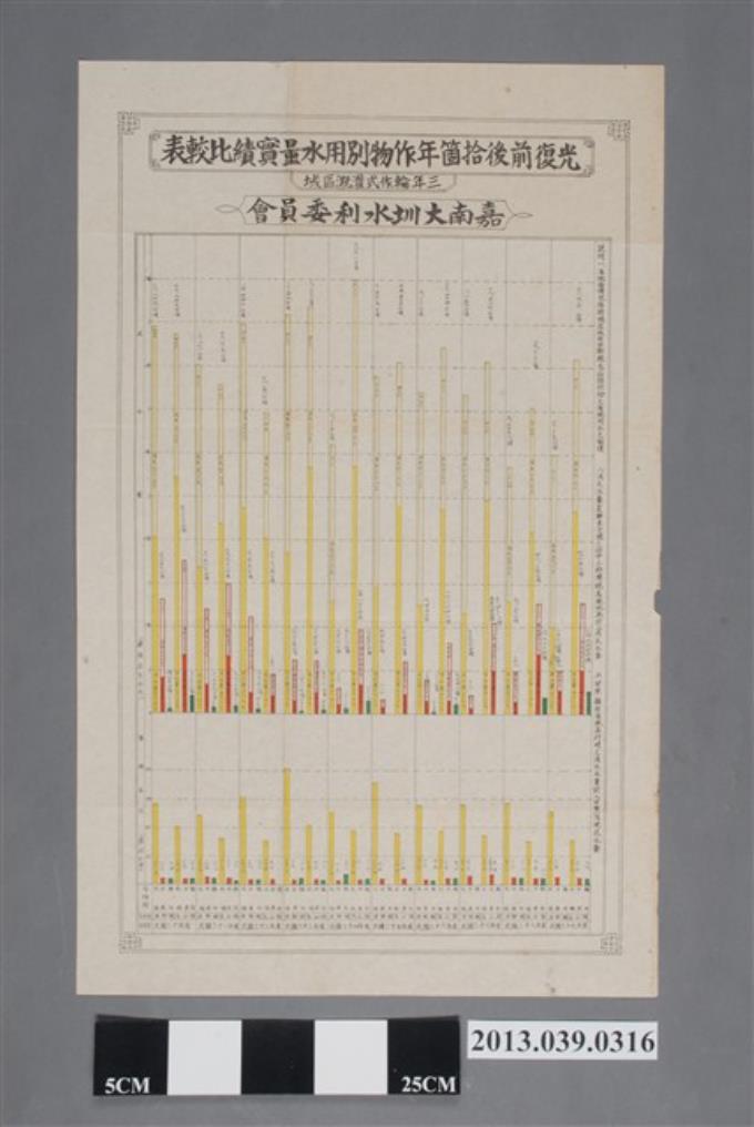 嘉南大圳水利委員會〈光復前後拾箇年作物別用水量實績比較表〉