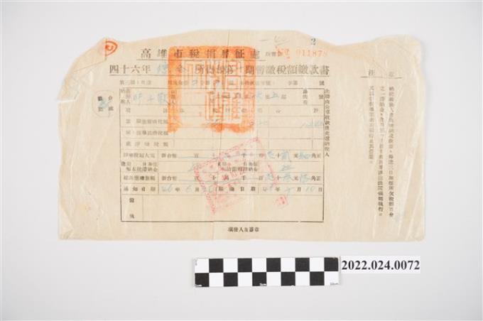 張子敬高雄市稅捐稽征處46年綜合所得稅第1期暫繳稅額繳款書