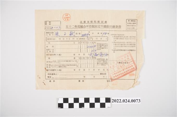 張子敬高雄市稅捐稽征處52年度綜合所得稅核定暫繳稅額繳款書